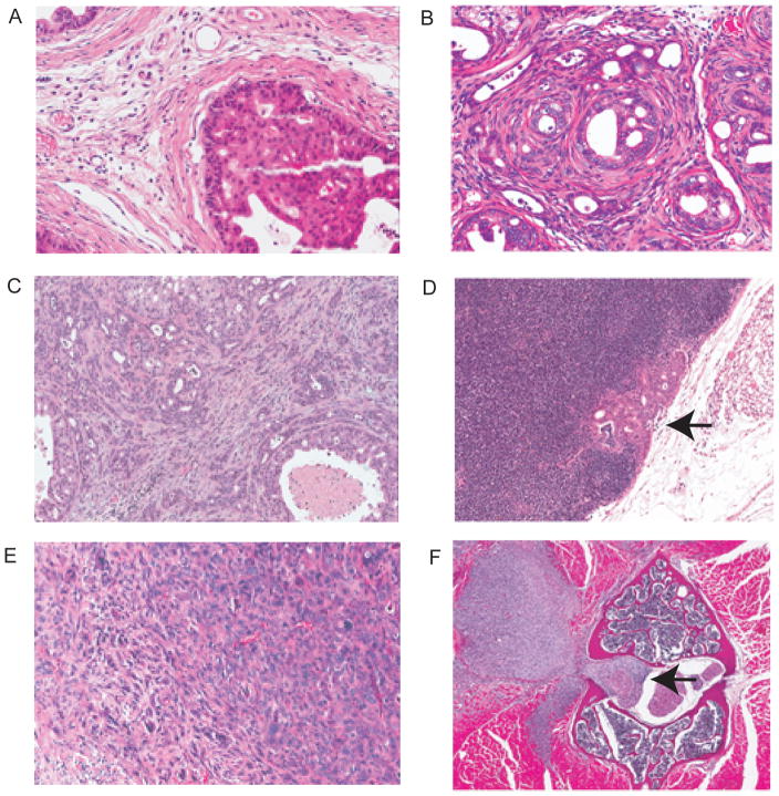 Animal models, particularly mouse models, play a central role in the study of the etiology, prevention, and treatment of human prostate cancer. While tissue culture models are extremely useful in understanding the biology of prostate cancer, they cannot recapitulate the complex cellular interactions within the tumor microenvironment that play a key role in cancer initiation and progression. The National Cancer Institute (NCI) Mouse Models of Human Cancers Consortium convened a group of human and veterinary pathologists to review the current animal models of prostate cancer and make recommendations about the pathologic analysis of these models. More than 40 different models with 439 samples were reviewed, including genetically engineered mouse models, xenograft, rat, and canine models. Numerous relevant models have been developed over the past 15 years, and each approach has strengths and weaknesses. Analysis of multiple genetically engineered models has shown that reactive stroma formation is present in all the models developing invasive carcinomas. In addition, numerous models with multiple genetic alterations display aggressive phenotypes characterized by sarcomatoid carcinomas and metastases, which is presumably a histologic manifestation of epithelial-mesenchymal transition. The significant progress in development of improved models of prostate cancer has already accelerated our understanding of the complex biology of prostate cancer and promises to enhance development of new approaches to prevention, detection, and treatment of this common malignancy.