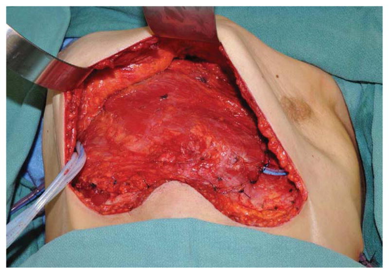 Results: Forty-nine consecutive patients underwent oncologic sternectomy reconstruction (mean follow-up 18 ± 23 months). More sternectomies were partial (74%) rather than total/subtotal (26%). Most defects (n = 40 [82%]) required skeletal reconstruction. Pectoralis muscle flaps were most commonly used for sternectomies with intact overlying skin (64%) and infrequently used when a presternal skin defect was present (36%; p = 0.06). Free flaps were more often used for total/subtotal vs partial sternectomy defects (75% vs 25%, respectively; p = 0.02). Complication rates for total/subtotal sternectomy and partial sternectomy were equivalent (46% vs 44%, respectively; p = 0.92).