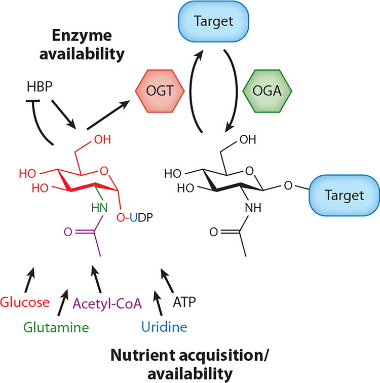 To maintain homeostasis under variable nutrient conditions, cells rapidly and robustly respond to fluctuations through adaptable signaling networks. Evidence suggests that the O-linked N-acetylglucosamine (O-GlcNAc) posttranslational modification of serine and threonine residues functions as a critical regulator of intracellular signaling cascades in response to nutrient changes. O-GlcNAc is a highly regulated, reversible modification poised to integrate metabolic signals and acts to influence many cellular processes, including cellular signaling, protein stability, and transcription. This review describes the role O-GlcNAc plays in governing both integrated cellular processes and the activity of individual proteins in response to nutrient levels. Moreover, we discuss the ways in which cellular changes in O-GlcNAc status may be linked to chronic diseases such as type 2 diabetes, neurodegeneration, and cancers, providing a unique window through which to identify and treat disease conditions.