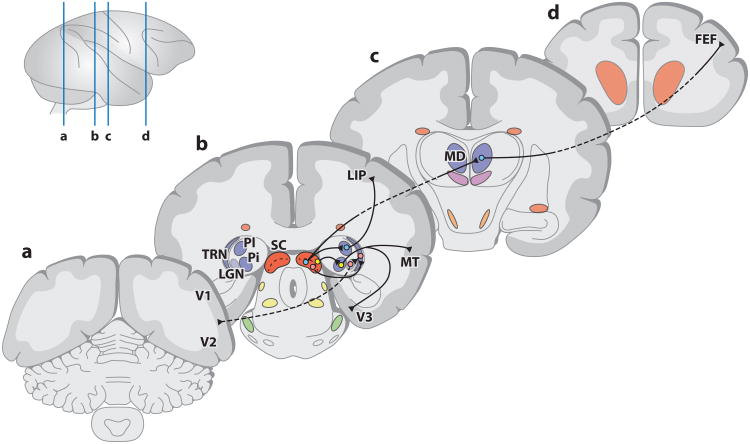 - Benevento LA, Port JD. Single neurons with both form/color differential responses and saccade-related responses in the nonretinotopic pulvinar of the behaving macaque monkey. Vis Neurosci. 1995;12(3):523–44. - PubMed