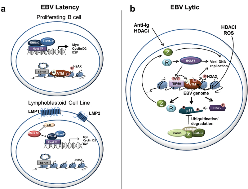 Viruses encounter many challenges within host cells in order to replicate their nucleic acid. In the case of DNA viruses, one challenge that must be overcome is recognition of viral DNA structures by the host DNA damage response (DDR) machinery. This is accomplished in elegant and unique ways by different viruses as each has specific needs and sensitivities dependent on its life cycle. In this review, we focus on three DNA tumor viruses and their interactions with the DDR. The viruses Epstein-Barr virus (EBV), Kaposi's sarcoma-associated herpesvirus (KSHV), and human papillomavirus (HPV) account for nearly all of the virus-associated human cancers worldwide. These viruses have also been excellent models for the study of oncogenic virus-mediated cell transformation. In this review, we will discuss how each of these viruses engage and subvert aspects of the host DDR. The first level of DDR engagement is a result of the genetic linkage between the oncogenic potential of these viruses and their ability to replicate. Namely, the promotion of cells from quiescence into the cell cycle to facilitate virus replication can be sensed through aberrant cellular DNA replication structures which activate the DDR and hinder cell transformation. DNA tumor viruses subvert this growth-suppressive DDR through changes in viral oncoprotein expression which ultimately facilitate virus replication. An additional level of DDR engagement is through direct detection of replicating viral DNA. These interactions parallel those observed in other DNA virus systems in that the need to subvert these intrinsic sensors of aberrant DNA structure in order to replicate must be in place. DNA tumor viruses are no exception. This review will cover the molecular features of DNA tumor virus interactions with the host DDR and the consequences for virus replication.