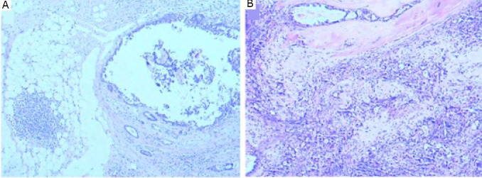 The development of accessory breast tissue, which is found anywhere along the milk line, is attributed to the failure of milk line remnants to regress during embryogenesis. Primary tumors may arise from any ectopic breast tissue. Accessory breast cancer occurring concurrently with primary invasive breast cancer is extremely rare. Two such cases were reported in this article. One was a 43-year-old Chinese female who exhibited bilateral breast cancer (invasive ductal carcinoma, not otherwise specified, IDC-NOS) and an accessory breast carcinoma (IDC-NOS) incidentally identified in her left axilla. The ectopic breast tissue in her right axilla presented with adenosis. The patient was surgically treated, followed by postoperative docetaxel epirubicin (TE) chemotherapy. The second case was a 53-year-old Chinese female with bilateral breast cancer (apocrine carcinoma) accompanied by an accessory breast carcinoma (IDC-NOS) in her right axilla that was also incidentally identified. The patient was surgically treated after three doses of cyclophosphamide epirubicin docetaxel (CET) neoadjuvant chemotherapy, followed by adjuvant chemotherapy of the same regimen.