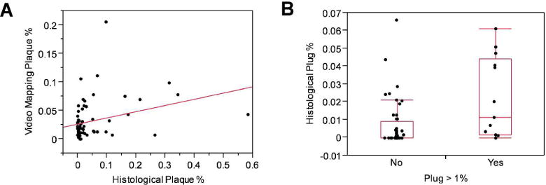Interstitial Randall's plaques and collecting duct plugs are distinct forms of renal calcification thought to provide sites for stone retention within the kidney. Here we assessed kidney stone precursor lesions in a random cohort of stone formers undergoing percutaneous nephrolithotomy. Each accessible papilla was endoscopically mapped following stone removal. The percent papillary surface area covered by plaque and plug were digitally measured using image analysis software. Stone composition was determined by micro-computed tomography and infrared analysis. A representative papillary tip was biopsied. The 24-h urine collections were used to measure supersaturation and crystal growth inhibition. The vast majority (99%) of stone formers had Randall's plaque on at least 1 papilla, while significant tubular plugging (over 1% of surface area) was present in about one-fifth of patients. Among calcium oxalate stone formers the amount of Randall's plaque correlated with higher urinary citrate levels. Tubular plugging correlated positively with pH and brushite supersaturation but negatively with citrate excretion. Lower urinary crystal growth inhibition predicted the presence of tubular plugging but not plaque. Thus, tubular plugging may be more common than previously recognized among patients with all types of stones, including some with idiopathic calcium oxalate stones.