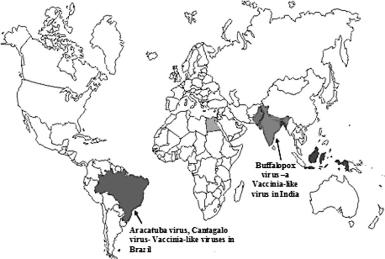 Among the members of the genus Orthopoxvirus (OPXV), vaccinia virus (VACV), the type species of the genus is a double-stranded DNA virus, belongs to the subfamily Chordopoxvirinae of the family Poxviridae. The causative agents of smallpox, VACV and Variola virus are mutually immunogenic and the type species of Orthopoxvirus, cause only mild complications in humans. Therefore, the VACV was used as a smallpox vaccine world over under mass immunization program promoted by World Health Organization, which lead to the variola eradication globally in 1979. Since then, no vaccination of human population has been carried out; however, vaccination has been continued for at-risk laboratory workers, military personnel and others working with recombinant VACV or other non-variola orthopoxviruses (OPXVs). There has now been a surge in the development of safer smallpox vaccines and understanding of the biology of VACV necessitating re-use of this vaccine in most vulnerable population, because of rise in bioterrorist threats globally. Also, globally there has been the emergence and re-emergence of vaccinia-like viruses (VLVs) in Brazil, buffalopox viruses in Egypt, Indonesia, India and its neighbouring countries like Nepal, Pakistan. Bioterrorism as well as emergence and re-emergence of the VLVs constitute a concern as 50 % of the population globally (40 % in USA) <30 years are unvaccinated and most vulnerable for smallpox reemergence. Thus, the search for new generation safer smallpox vaccine entails review of biology of VLVs in the smallpox-free world. In this review, we present occurrence of VLVs in the world with exhaustive discussion particularly on the emergence and re-emergence of these viruses in India and Brazil where VLVs are sufficiently studied.