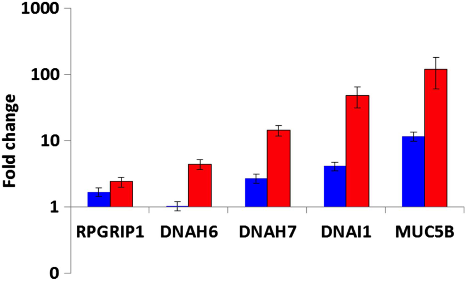 Methods and findings: We collected transcriptional profiles on lung tissue from 119 patients with IPF/UIP and 50 non-diseased controls. Differential expression of individual transcripts was identified using an analysis of covariance (ANCOVA) model incorporating the clinical diagnosis of each patient as well as age, gender and smoking status. Validation was performed in an independent cohort of 111 IPF/UIP and 39 non-diseased controls. Our analysis identified two subtypes of IPF/UIP based on a strong molecular signature associated with expression of genes previously associated with fibrosis (matrix metalloproteinases, osteopontin, keratins), cilium genes and genes with unknown function. We demonstrate that elevated expression of cilium genes is associated with more extensive microscopic honeycombing and higher expression of both the airway mucin gene MUC5B and the metalloproteinase MMP7, a gene recently implicated in attenuating ciliated cell differentiation during wound repair.