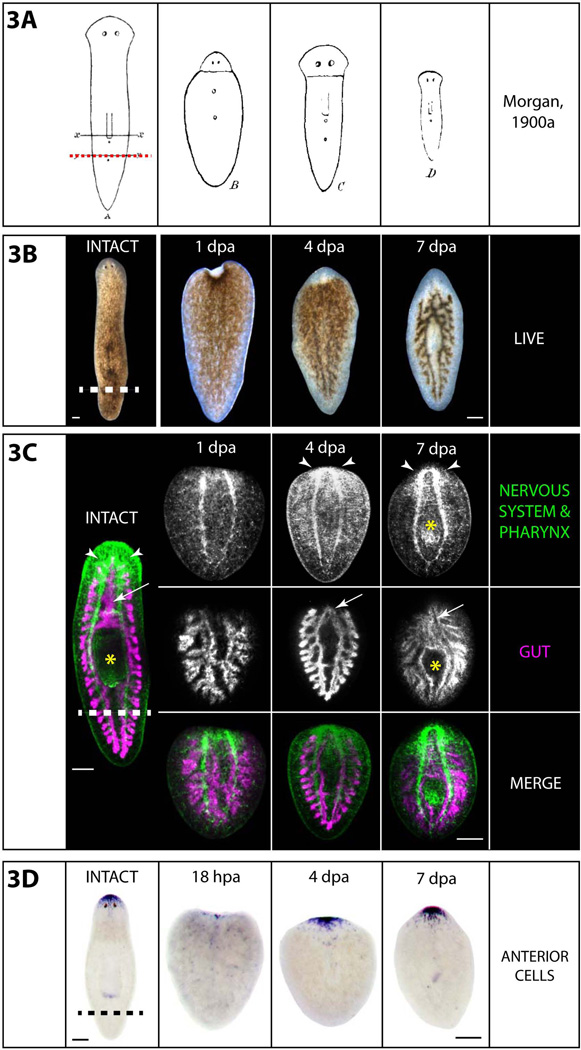 Having an almost unlimited capacity to regenerate tissues lost to age and injury, planarians have long fascinated naturalists. In the Western hemisphere alone, their documented history spans more than 200 years. Planarians were described in the early 19th century as being 'immortal under the edge of the knife', and initial investigation of these remarkable animals was significantly influenced by studies of regeneration in other organisms and from the flourishing field of experimental embryology in the late 19th and early 20th centuries. This review strives to place the study of planarian regeneration into a broader historical context by focusing on the significance and evolution of knowledge in this field. It also synthesizes our current molecular understanding of the mechanisms of planarian regeneration uncovered since this animal's relatively recent entrance into the molecular-genetic age.