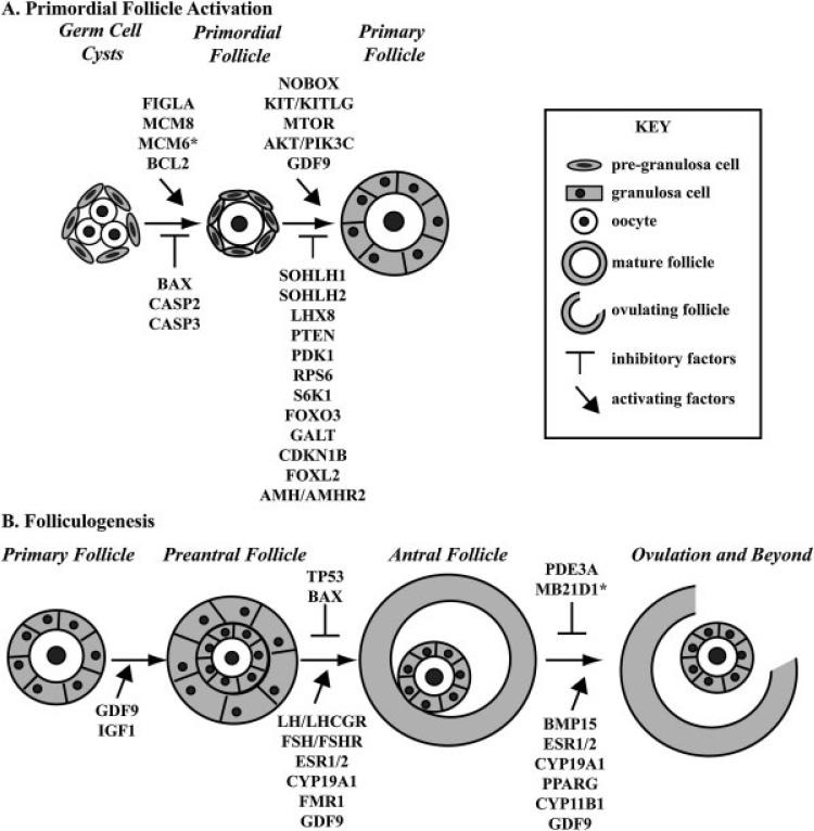 - Jagarlamudi K, Rajkovic A. Oogenesis: transcriptional regulators and mouse models. Mol Cell Endocrinol. 2012;356(1–2):31–39. - PubMed
