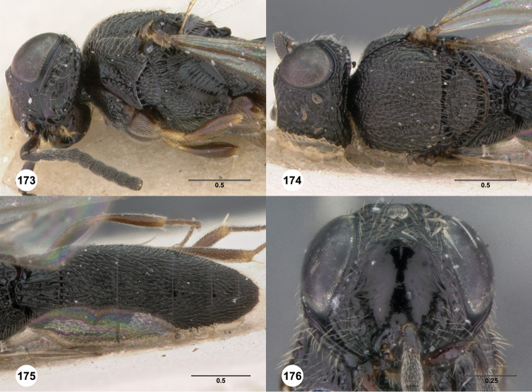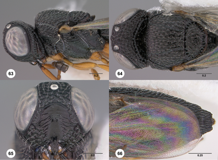 The Australasian and southwest Pacific species of Oxyscelio (Hymenoptera: Platygastridae s.l.) are revised. A total of 80 species are recognized as valid, 13 of which are redescribed: O. atricoxa (Dodd), O. concoloripes (Dodd), O. flavipes (Kieffer), O. grandis (Dodd), O. hyalinipennis (Dodd), O. magniclava (Dodd), O. mirellus (Dodd), O. montanus (Dodd), O. nigriclava (Dodd), O. nigricoxa (Dodd), O. rugulosus (Dodd), O. shakespearei (Girault), and O. solitarius (Dodd). Oxyscelio glabriscutellum (Dodd) syn. n. is placed as a subjective junior synonym of O. rugulosus. Sixty-seven new species are described, many representing new distributional records for the genus - O. aciculae Burks, sp. n., O. anfractus Burks, sp. n., O. bellariorum Burks, sp. n., O. bicoloripedis Burks, sp. n., O. brevitas Burks, sp. n., O. catenae Burks, sp. n., O. caudarum Burks, sp. n., O. circulorum Burks, sp. n., O. clivi Burks, sp. n., O. clupei Burks, sp. n., O. conjuncti Burks, sp. n., O. contusionis Burks, sp. n., O. corrugationis Burks, sp. n., O. croci Burks, sp. n., O. cuspidis Burks, sp. n., O. densitatis Burks, sp. n., O. dissimulationis Burks, sp. n., O. divisionis Burks, sp. n., O. exiguitatis Burks, sp. n., O. fluctuum Burks, sp. n., O. foliorum Burks, sp. n., O. funis Burks, sp. n., O. gressus Burks, sp. n., O. hamorum Burks, sp. n., O. incisurae Burks, sp. n., O. lenitatis Burks, sp. n., O. leviventris Burks, sp. n., O. limbi Burks, sp. n., O. liminis Burks, sp. n., O. linguae Burks, sp. n., O. lintris Burks, sp. n., O. livens Burks, sp. n., O. mystacis Burks, sp. n., O. nasi Burks, sp. n., O. nitoris Burks, sp. n., O. obliquiatis Burks, sp. n., O. oblongiclypei Burks, sp. n., O. obturationis Burks, sp. n., O. oculi Burks, sp. n., O. palati Burks, sp. n., O. pectinis Burks, sp. n., O. pollicis Burks, sp. n., O. proceritatis Burks, sp. n., O. productionis Burks, sp. n., O. radii Burks, sp. n., O. rami Burks, sp. n., O. rupturae Burks, sp. n., O. sarcinae Burks, sp. n., O. scismatis Burks, sp. n., O. sciuri Burks, sp. n., O. scutorum Burks, sp. n., O. sepisessor Burks, sp. n., O. sinuationis Burks, sp. n., O. sordes Burks, sp. n., O. spatula Burks, sp. n., O. stipulae Burks, sp. n., O. stringerae Burks, sp. n., O. tenuitatis Burks, sp. n., O. truncationis Burks, sp. n., O. tubi Burks, sp. n., O. umbonis Burks, sp. n., O. uncinorum Burks, sp. n., O. valdecatenae Burks, sp. n., O. velamenti Burks, sp. n., O. verrucae Burks, sp. n., O. viator Burks, sp. n., and O. wa Burks, sp. n. The fauna is divided into nine diagnostic species groups, with five species unplaced to group.