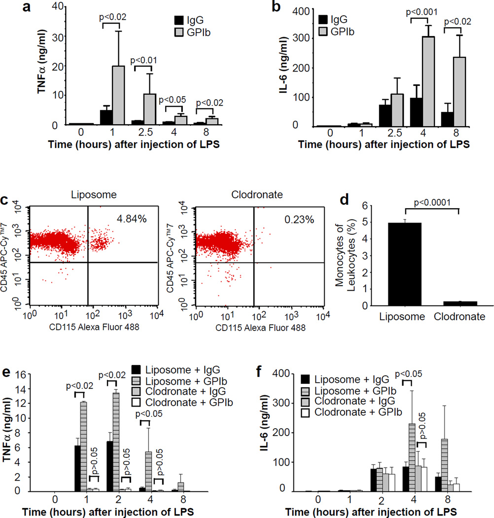Although it has long been known that patients with sepsis often have thrombocytopenia and that septic patients with severe thrombocytopenia have a poor prognosis and higher mortality, the role of platelets in the pathogenesis of sepsis is poorly understood. Here we report a protective role of platelets in septic shock. We show that experimental thrombocytopenia induced by intraperitoneal injection of an anti-glycoprotein Ibα monoclonal antibody increases mortality and aggravates organ failure, whereas transfusion of platelets reduces mortality in lipopolysaccharide-induced endotoxemia and a bacterial infusion mouse sepsis model. Plasma concentrations of proinflammatory cytokines TNF-α and IL-6 are elevated by thrombocytopenia and decreased by platelet transfusion in septic mice. Furthermore, we identify that platelets protect from septic shock by inhibiting macrophage-dependent inflammation via the COX1/PGE₂/EP4-dependent pathway. Thus, these findings demonstrate a previously unappreciated role for platelets in septic shock and suggest that platelet transfusion may be effective in treating severely septic patients.