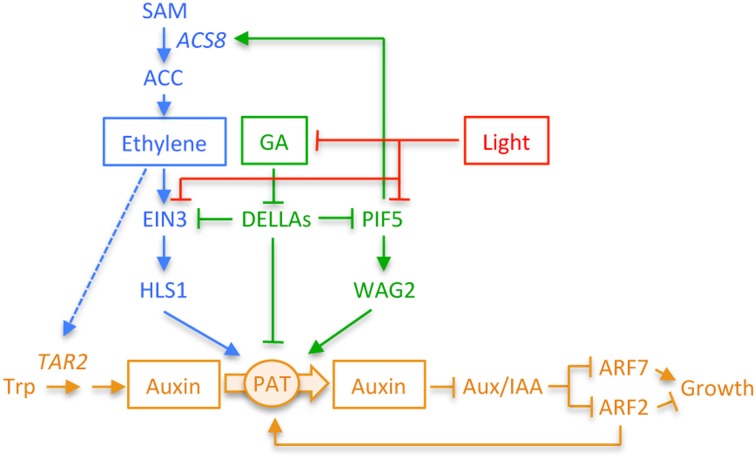 Keywords: apical hook; auxin; development; ethylene; gibberellin; hormone interaction.