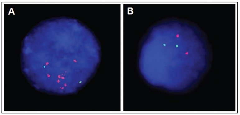 Keywords: Case reports; Chromosomes, human, pair 21/genetics; Gene amplification; In situ hybridization, fluorescence; Leukemia, B-cell; Leukemia, lymphoid; Transcription factors.