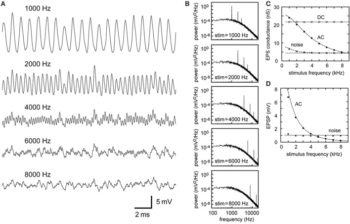 A wide variety of neurons encode temporal information via phase-locked spikes. In the avian auditory brainstem, neurons in the cochlear nucleus magnocellularis (NM) send phase-locked synaptic inputs to coincidence detector neurons in the nucleus laminaris (NL) that mediate sound localization. Previous modeling studies suggested that converging phase-locked synaptic inputs may give rise to a periodic oscillation in the membrane potential of their target neuron. Recent physiological recordings in vivo revealed that owl NL neurons changed their spike rates almost linearly with the amplitude of this oscillatory potential. The oscillatory potential was termed the sound analog potential, because of its resemblance to the waveform of the stimulus tone. The amplitude of the sound analog potential recorded in NL varied systematically with the interaural time difference (ITD), which is one of the most important cues for sound localization. In order to investigate the mechanisms underlying ITD computation in the NM-NL circuit, we provide detailed theoretical descriptions of how phase-locked inputs form oscillating membrane potentials. We derive analytical expressions that relate presynaptic, synaptic, and postsynaptic factors to the signal and noise components of the oscillation in both the synaptic conductance and the membrane potential. Numerical simulations demonstrate the validity of the theoretical formulations for the entire frequency ranges tested (1-8 kHz) and potential effects of higher harmonics on NL neurons with low best frequencies (<2 kHz).