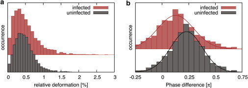 The mechanical properties of living cells are a label-free biophysical marker of cell viability and health; however, their use has been greatly limited by low measurement throughput. Although examining individual cells at high rates is now commonplace with fluorescence activated cell sorters, development of comparable techniques that nondestructively probe cell mechanics remains challenging. A fundamental hurdle is the signal response time. Where light scattering and fluorescence signatures are virtually instantaneous, the cell stress relaxation, typically occurring on the order of seconds, limits the potential speed of elastic property measurement. To overcome this intrinsic barrier to rapid analysis, we show here that cell viscoelastic properties measured at frequencies far higher than those associated with cell relaxation can be used as a means of identifying significant differences in cell phenotype. In these studies, we explore changes in erythrocyte mechanical properties caused by infection with Plasmodium falciparum and find that the elastic response alone fails to detect malaria at high frequencies. At timescales associated with rapid assays, however, we observe that the inelastic response shows significant changes and can be used as a reliable indicator of infection, establishing the dynamic viscoelasticity as a basis for nondestructive mechanical analogs of current high-throughput cell classification methods.