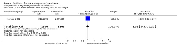 - McGregor JA, French JI, Seo K. Antimicrobial therapy in preterm premature rupture of membranes: results of a prospective, double‐blind, placebo‐controlled trial of erythromycin. American Journal of Obstetrics and Gynecology 1991;165:632‐40. - PubMed