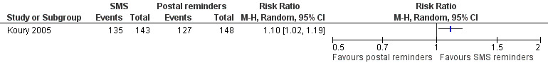 - Dini EF, Linkins RW, Chaney M. Effectiveness of computer‐generated telephone messages in increasing clinic visits. Archives of Pediatrics and Adolescent Medicine 1995;149(8):902‐5. - PubMed