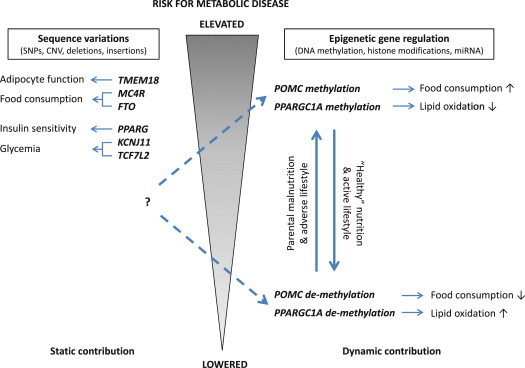 Keywords: ADCY3, adenylate cyclase 3; AQP9, aquaporin 9; BDNF, brain-derived neurotrophic factor; CDKAL1, CDK5 regulatory subunit associated protein 1-like 1; CPEB4, cytoplasmic polyadenylation element binding protein 4; DUSP22, dual specificity phosphatase 22; DUSP8, dual specificity phosphatase 8; Epigenetics; GALNT10, UDP-N-acetyl-alpha-d-galactosamine:polypeptide N-acetylgalactosaminyltransferase 10 (GalNAc-T10); GIPR, gastric inhibitory polypeptide receptor; GNPDA2, glucosamine-6-phosphate deaminase 2; GP2, glycoprotein 2 (zymogen granule membrane); GWAS; HIPK3, homeodomain interacting protein kinase 3; IFI16, interferon, gamma-inducible protein 16; KCNQ1, potassium voltage-gated channel, KQT-like subfamily, member 1; KLHL32, kelch-like family member 32; LEPR, leptin receptor; MAP2K4, mitogen-activated protein kinase kinase 4; MAP2K5, mitogen-activated protein kinase kinase 5; MIR148A, microRNA 148a; MMP9, matrix metallopeptidase 9 (gelatinase B, 92 kDa gelatinase, 92 kDa type IV collagenase); MNDA, myeloid cell nuclear differentiation antigen; NFE2L3, nuclear factor, erythroid 2-like 3; Obesity; PACS1, phosphofurin acidic cluster sorting protein 1; PAX6, paired box gene 6; PCSK1, proprotein convertase subtilisin/kexin type 1; PGC1α, peroxisome proliferative activated receptor, gamma, coactivator 1 alpha, PM2OD1; PRKCH, protein kinase C, eta; PRKD1, protein kinase D1; PRKG1, protein kinase, cGMP-dependent, type I; Positional cloning; QPCTL, glutaminyl-peptide cyclotransferase-like; RBJ, DnaJ (Hsp40) homolog, subfamily C, member 27; RFC5, replication factor C (activator 1) 5; RMST, rhabdomyosarcoma 2 associated transcript (non-protein coding); SEC16B, SEC16 homolog B; TFAP2B, transcription factor AP-2 beta (activating enhancer binding protein 2 beta); TNNI3, troponin I type 3 (cardiac); TNNT1, troponin T type 1 (skeletal, slow); Type 2 diabetes.