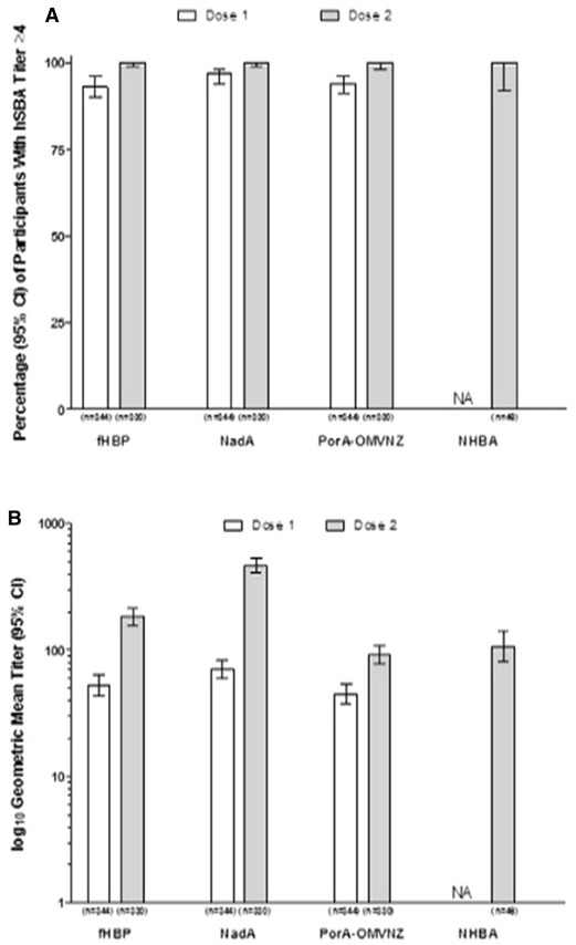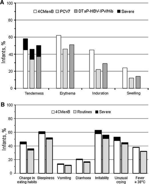 Recently approved in Europe and Australia, the multi-component meningococcal B vaccine, 4CMenB (Bexsero®, Novartis Vaccines and Diagnostics), contains three surface-exposed recombinant proteins (fHbp, NadA, and NHBA) and New Zealand strain outer membrane vesicles (NZ OMV) with PorA 1.4 antigenicity. This comprehensive review of the 4CMenB clinical development program covers pivotal phase I/IIb/III studies in over 7,000 adults, adolescents, and infants. The immunological correlate for clinical protection used was human complement-mediated serum bactericidal activity titers ≥4 or 5 against indicator strains for individual antigens. Based on achievement of protective titers, a four-dose schedule (three primary doses and one booster dose) for infants and a two-dose schedule for adolescents provided the best results. Observed increases in injection site pain/tenderness and fever in infants, and injection site pain, malaise, and headache in adolescents compared with routine vaccines, were mostly mild to moderate; frequencies of rare events (Kawasaki disease, juvenile arthritis) were not significantly different from non-vaccinated individuals. 4CMenB is conservatively estimated to provide 66-91 % coverage against meningococcal serogroup B strains worldwide.