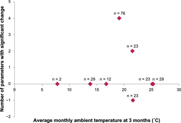 Results: A significant change in urinary storage symptoms (P = 0.006), and especially in nighttime frequency (P< 0.001), was observed by switching drugs, suggesting the perceived placebo effect. There was significant improvement of daytime frequency (P< 0.05), nighttime frequency (P< 0.001), storage symptoms (P< 0.001), and total IPSS (P< 0.05) when the magnitude of ambient temperature change from before and 3 months after switching drugs was higher than 10°C, while no significant improvement was noted in any of the parameters examined when the same was lower than 10°C.