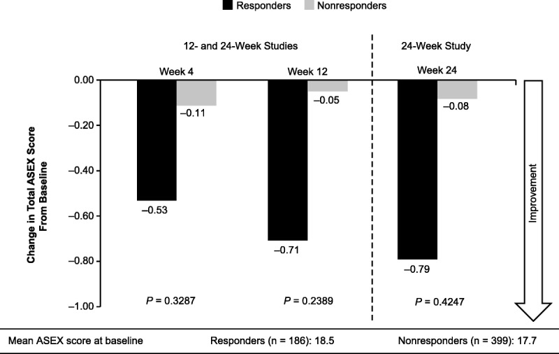 Results: Pooled efficacy and safety populations comprised 1,174 and 1,175 participants, respectively. Baseline values were similar for median weight (∼75 kg), median BMI (∼28 kg/m), and the proportion of women with sexual dysfunction (∼58%). No clinically meaningful or statistically significant changes from baseline in weight or sexual function assessments occurred in the paroxetine 7.5 mg group. Small but statistically significant increases in weight and BMI were observed in the placebo group only on week 4. No significant difference between treatment groups was observed in the proportion of participants who had 7% or higher gain in body weight on week 4, 12, or 24. Rates of adverse events suggestive of sexual dysfunction were low and similar in both treatment groups.