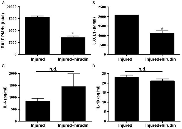 Results: We found significantly increased levels of C5a in the BAL of injured animals as early as 24 hours, persisting for up to 72 hours after injury. Hirudin-treated injured mice had significantly decreased levels of thrombin in the BAL that correlated with reduced C5a levels. Injured mice challenged with intratracheal (IT) LPS had increased C5a and inflammatory response. Conversely, inhibition of C5a or its receptor, C5aR, before LPS challenge correlated with decreased inflammatory responses; C5a-deficient mice showed a similar loss of primed response to LPS challenge.
