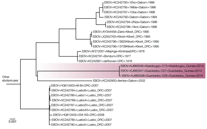 Phylogenetic Analysis of Guinea 2014 EBOV Ebolavirus Outbreak