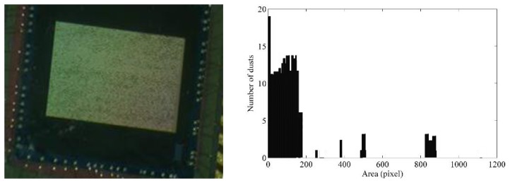 In this paper, we propose a new sensor for the detection and analysis of dusts (seen as powders and fibers) in indoor environments, especially designed for applications in the field of Cultural Heritage or in other contexts where the presence of dust requires special care (surgery, clean rooms, etc.). The presented system relies on image processing techniques (enhancement, noise reduction, segmentation, metrics analysis) and it allows obtaining both qualitative and quantitative information on the accumulation of dust. This information aims to identify the geometric and topological features of the elements of the deposit. The curators can use this information in order to design suitable prevention and maintenance actions for objects and environments. The sensor consists of simple and relatively cheap tools, based on a high-resolution image acquisition system, a preprocessing software to improve the captured image and an analysis algorithm for the feature extraction and the classification of the elements of the dust deposit. We carried out some tests in order to validate the system operation. These tests were performed within the Sistine Chapel in the Vatican Museums, showing the good performance of the proposed sensor in terms of execution time and classification accuracy.