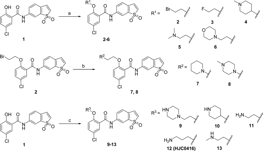 In a continuing effort to develop orally bioavailable small-molecule STAT3 inhibitors as potential therapeutic agents for human cancer, a series of novel diversified analogues based on our identified lead compound HJC0149 (1) (5-chloro-N-(1,1-dioxo-1H-1λ(6)-benzo[b]thiophen-6-yl)-2-hydroxybenzamide, Eur. J. Med. Chem. 2013, 62, 498-507) have been rationally designed, synthesized, and pharmacologically evaluated. Molecular docking studies and biological characterization supported our earlier findings that the O-alkylamino-tethered side chain on the hydroxyl group is an effective and essential structural determinant for improving biological activities and druglike properties of these molecules. Compounds with such modifications exhibited potent antiproliferative effects against breast and pancreatic cancer cell lines with IC50 values from low micromolar to nanomolar range. Among them, the newly discovered STAT3 inhibitor 12 (HJC0416) displayed an intriguing anticancer profile both in vitro and in vivo (i.p. & p.o.). More importantly, HJC0416 is an orally bioavailable anticancer agent as a promising candidate for further development.