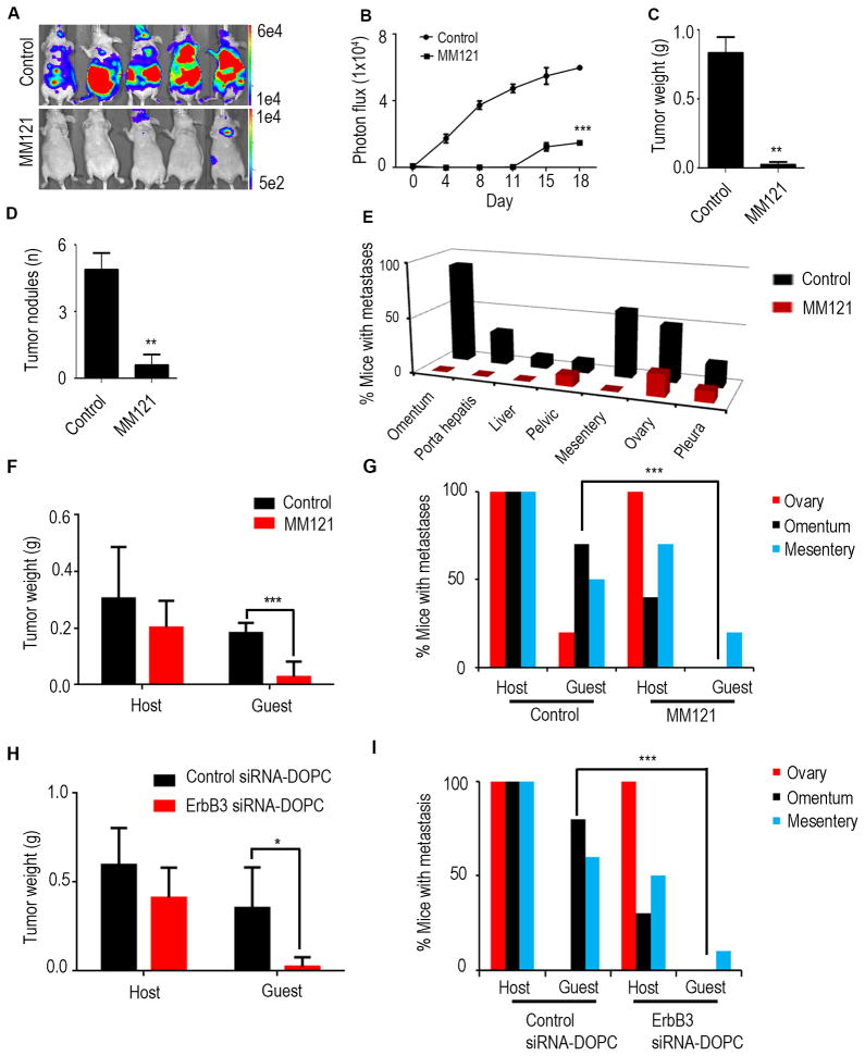 Ovarian cancer has a clear predilection for metastasis to the omentum, but the underlying mechanisms involved in ovarian cancer spread are not well understood. Here, we used a parabiosis model that demonstrates preferential hematogenous metastasis of ovarian cancer to the omentum. Our studies revealed that the ErbB3-neuregulin 1 (NRG1) axis is a dominant pathway responsible for hematogenous omental metastasis. Elevated levels of ErbB3 in ovarian cancer cells and NRG1 in the omentum allowed for tumor cell localization and growth in the omentum. Depletion of ErbB3 in ovarian cancer impaired omental metastasis. Our results highlight hematogenous metastasis as an important mode of ovarian cancer metastasis. These findings have implications for designing alternative strategies aimed at preventing and treating ovarian cancer metastasis.