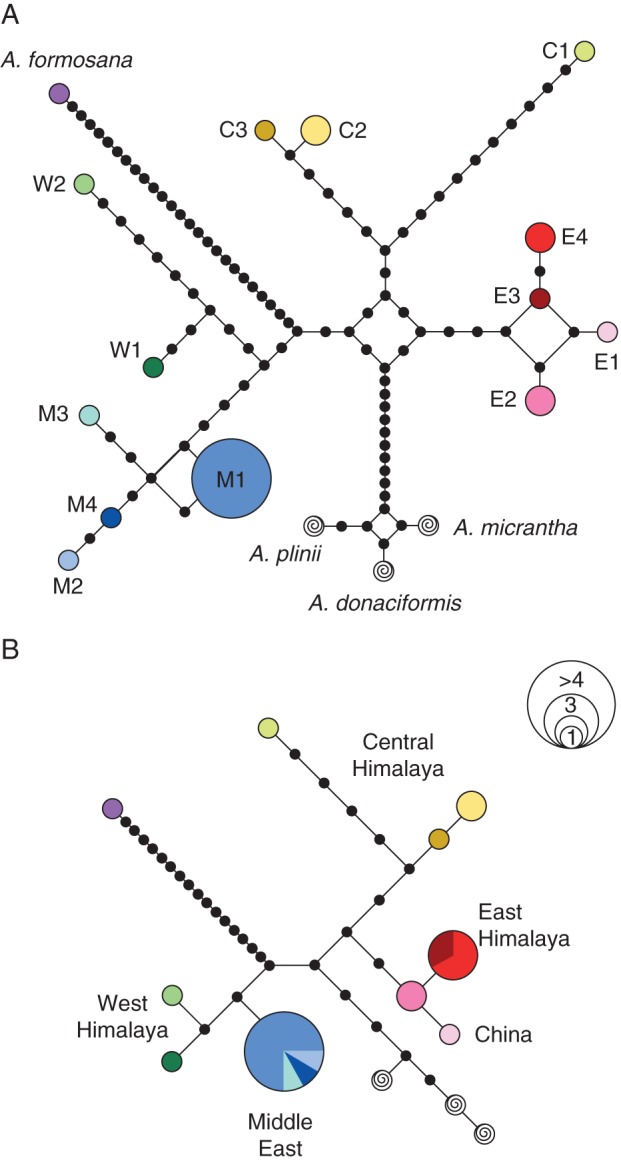 Methods: This study tests the hypothesis of its ancient introduction from Asia to the Mediterranean by using plastid DNA sequencing and morphometric analysis on 127 herbarium specimens collected across sub-tropical Eurasia. In addition, a bioclimatic species distribution model calibrated on 1221 Mediterranean localities was used to identify similar ecological niches in Asia.