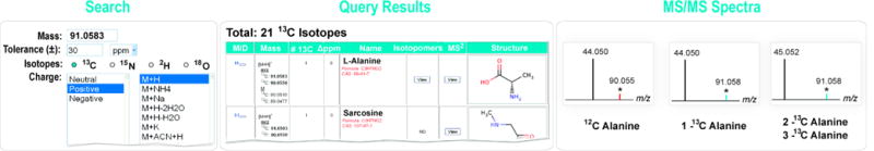 The METLIN metabolite database has become one of the most widely used resources in metabolomics for making metabolite identifications. However, METLIN is not designed to identify metabolites that have been isotopically labeled. As a result, unbiasedly tracking the transformation of labeled metabolites with isotope-based metabolomics is a challenge. Here, we introduce a new database, called isoMETLIN (http://isometlin.scripps.edu/), that has been developed specifically to identify metabolites incorporating isotopic labels. isoMETLIN enables users to search all computed isotopologues derived from METLIN on the basis of mass-to-charge values and specified isotopes of interest, such as (13)C or (15)N. Additionally, isoMETLIN contains experimental MS/MS data on hundreds of isotopomers. These data assist in localizing the position of isotopic labels within a metabolite. From these experimental MS/MS isotopomer spectra, precursor atoms can be mapped to fragments. The MS/MS spectra of additional isotopomers can then be computationally generated and included within isoMETLIN. Given that isobaric isotopomers cannot be separated chromatographically or by mass but are likely to occur simultaneously in a biological system, we have also implemented a spectral-mixing function in isoMETLIN. This functionality allows users to combine MS/MS spectra from various isotopomers in different ratios to obtain a theoretical MS/MS spectrum that matches the MS/MS spectrum from a biological sample. Thus, by searching MS and MS/MS experimental data, isoMETLIN facilitates the identification of isotopologues as well as isotopomers from biological samples and provides a platform to drive the next generation of isotope-based metabolomic studies.