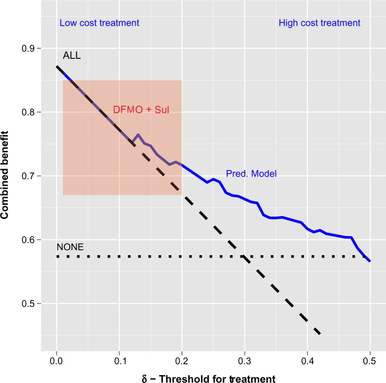 Combined benefit of prediction and treatment: a criterion for evaluating clinical prediction models