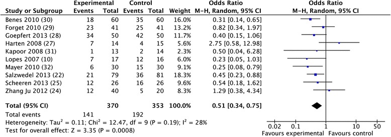 Methods: A systematic literature review, using MEDLINE, EMBASE, and The Cochrane Library databases through September 2013 was conducted. Data synthesis was obtained by using odds ratio (OR) and weighted mean difference (WMD) with 95% confidence interval (CI) by random-effects model.