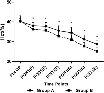 Results: Group A had a transfusion rate of 9% (3/33), whereas 32.4% of patients (12/37) in Group B received allogenic blood transfusion. Significant benefits were also found in Group A in terms of postoperative Hb and hematocrit (Hct), reduction of postoperative pain, swelling, postoperative pain, length of stays, and hospital costs. No deep vein thrombosis (DVT) events were found in all these patients.