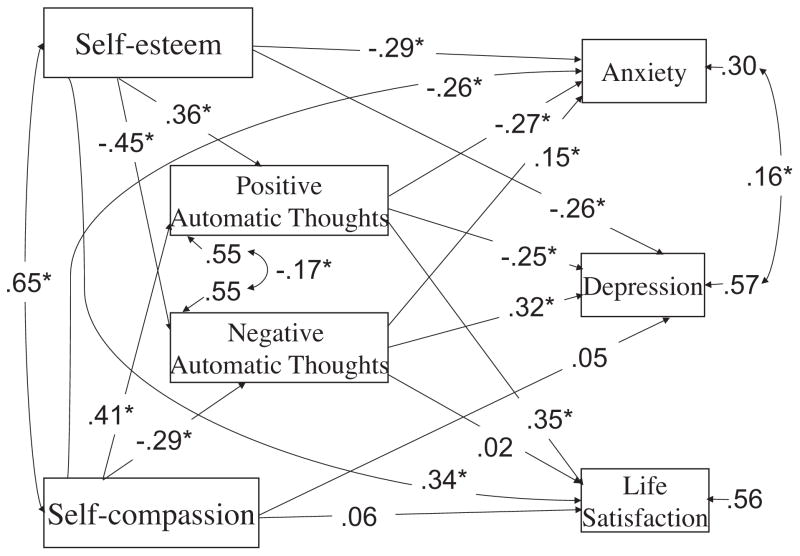 Keywords: Anxiety; Automatic thoughts; Depression; Life satisfaction; Self-compassion; Self-esteem.