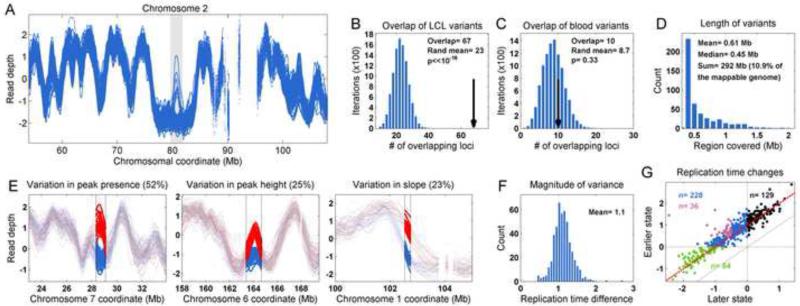 Genomic DNA replicates in a choreographed temporal order that impacts the distribution of mutations along the genome. We show here that DNA replication timing is shaped by genetic polymorphisms that act in cis upon megabase-scale DNA segments. In genome sequences from proliferating cells, read depth along chromosomes reflected DNA replication activity in those cells. We used this relationship to analyze variation in replication timing among 161 individuals sequenced by the 1000 Genomes Project. Genome-wide association of replication timing with genetic variation identified 16 loci at which inherited alleles associate with replication timing. We call these "replication timing quantitative trait loci" (rtQTLs). rtQTLs involved the differential use of replication origins, exhibited allele-specific effects on replication timing, and associated with gene expression variation at megabase scales. Our results show replication timing to be shaped by genetic polymorphism and identify a means by which inherited polymorphism regulates the mutability of nearby sequences.