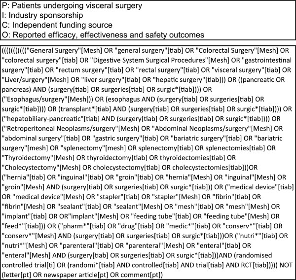 Methods/design: A literature search in the Cochrane Library, MEDLINE and EMBASE and additional hand searches in relevant citations will be conducted. In order to cover all relevant areas of general and abdominal surgery, a new literature search strategy called multi-PICO search strategy (MPSS) has been developed. No language restriction will be applied. The search will be limited to publications between January 1985 and July 2014. Information on funding source, outcome, study characteristics and methodological quality will be extracted.The association between industry sponsorship and positive outcome will be tested by a chi-squared test. A multivariate logistic regression analysis will be performed to control for possible confounders, such as number of study centres, multinational trials, methodological quality, journal impact factor and sample size.