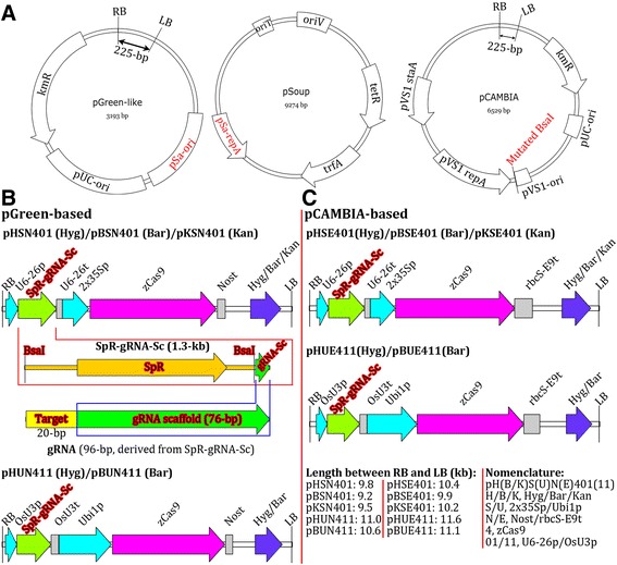 Conclusions: We developed a toolkit that facilitates transient or stable expression of the CRISPR/Cas9 system in a variety of plant species, which will facilitate plant research, as it enables high efficiency generation of mutants bearing multiple gene mutations.