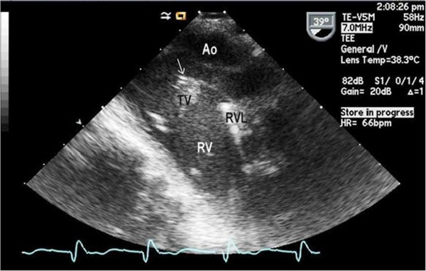 Case presentation: We present here what we believe to be the first case of Aggregatibacter aphrophilus pacemaker endocarditis. A 62-year-old African American male with a medical history significant for dual-chamber pacemaker placement in 1996 for complete heart block with subsequent lead manipulation in 2007, presented to his primary care doctor with fever, chills, night sweats, fatigue, and ten-pound weight loss over a four-month period. Physical examination revealed a new murmur and jugular venous distension which prompted initiation of antibiotics for suspicion of endocarditis. Both sets of initial blood cultures were positive for A. aphrophilus. Transesophageal echocardiogram revealed vegetations on the tricuspid valve and the right ventricular pacemaker lead (Figure 1). This case highlights the importance of identifying rare causes of endocarditis and recognizing that treatment may not differ from the standard treatment for typical presentations. The patient received intravenous ceftriaxone for his endocarditis for a total of six weeks. Upon device removal, temporary jugular venous pacing wires were placed. After two weeks of antibiotic treatment and no clinical deterioration, a new permanent pacemaker was placed and the patient was discharged home.