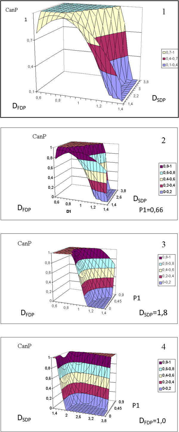 Results: Meaningful relationships were found among the in vitro data. The dynamic parameters of water in breast tissue are stipulated by the histological constituents of the tissues (P, St, AT, PCE, and V). High coefficients of determination (R2) were obtained in the non-linear regression analysis: D(FDP) (R2 = 0.92), D(SDP) (R2 = 0.81), and P1(R2 = 0.93).In the cancer probability analysis, the informative value (R2) of the obtained equations of cancer probability in distinguishing tissue malignancy depended on the parameters input to the model. In order of increasing value, these equations were: cancer probability (P, St, AT, PCE, V) (R2 = 0.66), cancer probability (D(FDP), D(SDP))(R2 = 0.69), cancer probability (D(FDP), D(SDP), P1) (R2 = 0.85).