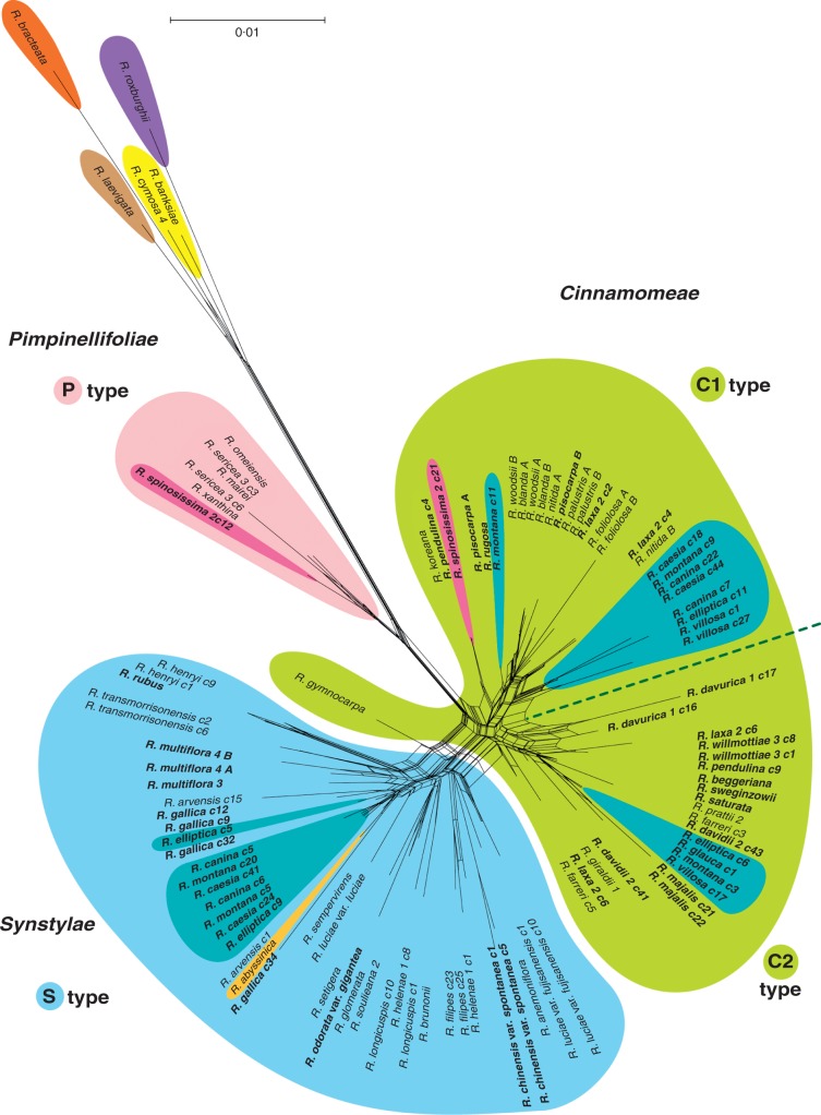 - Bruneau A, Starr JR, Joly S. 2007. Phylogenetic relationships in the genus Rosa: new evidence from chloroplast DNA sequences and an appraisal of current knowledge. Systematic Botany 32: 366–378.