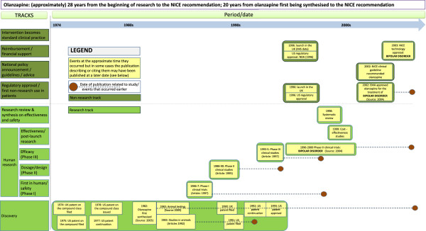 Methods: Following reviews of the literature on time lags and of relevant policy documents, we developed a new approach to conduct case studies of time lags. We built on the process marker model, including developing a matrix with a series of overlapping tracks to allow us to present and measure elements within any overall time lag. We identified a reduced number of key markers or calibration points and tested our new approach in seven case studies of research leading to interventions in cardiovascular disease and mental health. Finally, we analysed the data to address our study's key aims.
