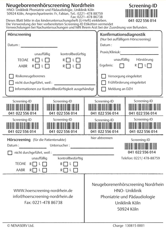 Keywords: genetic hearing disorders; newborn hearing screening; organization of newborn hearing screening in Germany; pediatric audiology diagnosis; speech and language delay.
