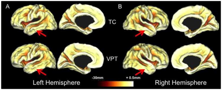 Keywords: Cortical surface; Folding; MRI; Relative surface area; Structural abnormality; Very preterm; Volume.