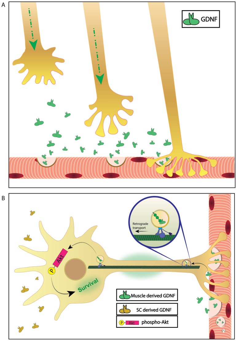 Keywords: Axon degeneration; Axonal transport; GDNF; Microfluidic chamber; Neuromuscular junction; Neurotrophic factors.