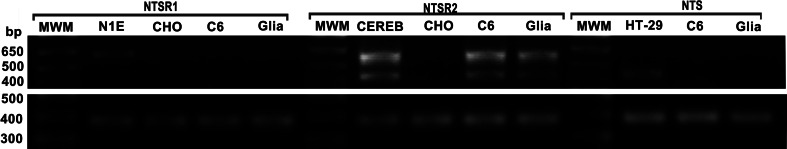 Glioblastoma is the most malignant primary brain tumor and is very resistant to treatment; hence, it has a poor prognosis. Neurotensin receptor type 1 (NTSR1) plays a key role in cancer malignancy and has potential therapeutic applications. However, the presence and function of neurotensin (NTS) receptors in glioblastoma is not clearly established. RT-PCR assays showed that healthy (non-tumor) astroglial cells and C6 glioma cells express NTSR2 and its isoform (vNTSR2) rather than NTSR1. In glioma cells, NTS promotes the phosphorylation of extracellular signal-regulated kinases 1/2 (ERK 1/2), an effect that was completely abolished by blocking the internalization of the NTS/NTSR complex. We demonstrated pharmacologically that the internalization is dependent on the activation of NTSR2 receptors and it was prevented by levocabastine, a NTSR2 receptor antagonist. The internalization of NTSR2 and vNTSR2 was further demonstrated by its ability to mediate gene transfer (transfection) via the NTS-polyplex system. Expression of reporter transgenes and of the pro-apoptotic soluble form of growth arrest specific 1 (tGAS1) was observed in glioma cells. A significant reduction on the viability of C6 cells was determined when tGAS1 was transfected into glioma cells. Conversely, astroglial cells could neither internalize NTS nor activate ERK 1/2 and could not be transfected by the NTS-polyplex. These results demonstrate that the internalization process of NTSR2 receptors is a key regulator necessary to trigger the activation of the ERK 1/2. Our data support a new internalization pathway in glioma C6 cells that involve NTSR2/vNTSR2, which can be used to selectively transfer therapeutic genes using the NTS-polyplex system.