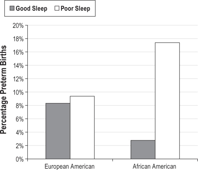 Conclusions: The data provide novel evidence that African American women exhibit greater inflammation in response to sleep disturbance than European American women and these effects correspond with length of gestation. Racial differences in susceptibility to sleep induced immune dysregulation may contribute to marked racial disparities in preterm birth.