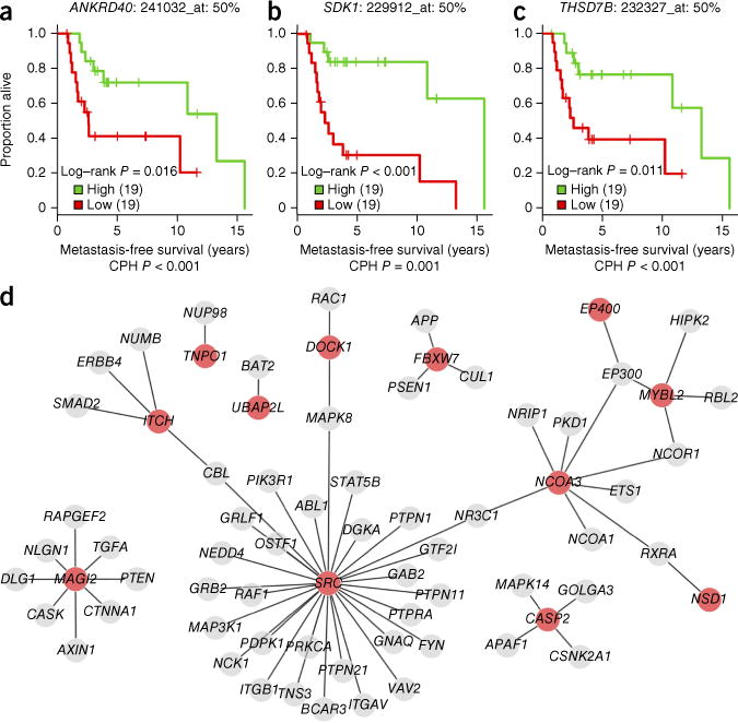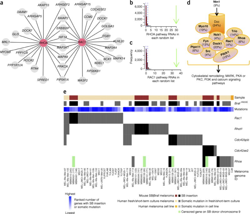 Although nearly half of human melanomas harbor oncogenic BRAF(V600E) mutations, the genetic events that cooperate with these mutations to drive melanogenesis are still largely unknown. Here we show that Sleeping Beauty (SB) transposon-mediated mutagenesis drives melanoma progression in Braf(V600E) mutant mice and identify 1,232 recurrently mutated candidate cancer genes (CCGs) from 70 SB-driven melanomas. CCGs are enriched in Wnt, PI3K, MAPK and netrin signaling pathway components and are more highly connected to one another than predicted by chance, indicating that SB targets cooperative genetic networks in melanoma. Human orthologs of >500 CCGs are enriched for mutations in human melanoma or showed statistically significant clinical associations between RNA abundance and survival of patients with metastatic melanoma. We also functionally validate CEP350 as a new tumor-suppressor gene in human melanoma. SB mutagenesis has thus helped to catalog the cooperative molecular mechanisms driving BRAF(V600E) melanoma and discover new genes with potential clinical importance in human melanoma.