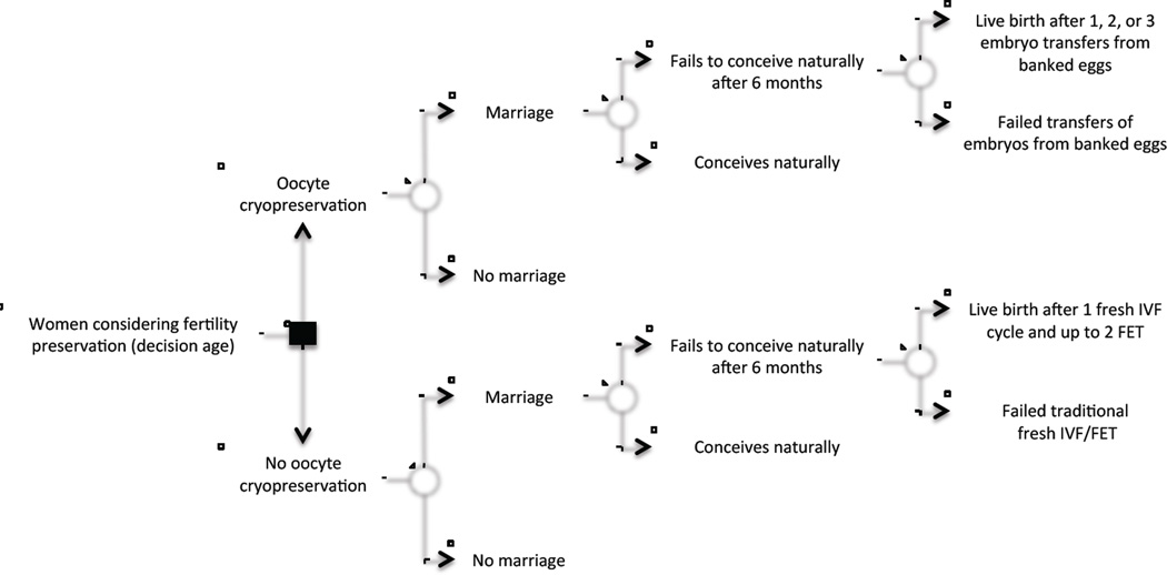 Main outcome and measure(s): Probability of live birth after initial decision whether or not to cryopreserve oocytes.