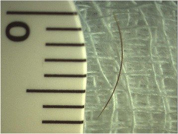 Case presentation: A 70-year-old Caucasian woman presented to the emergency department of our hospital complaining of sudden visual impairment and floaters of her right eye initiated 2 weeks earlier. Ophthalmic history included a penetrating injury of the right eye with a sharp metallic object 40 years ago and an uncomplicated phacoemulsification surgery in the same eye 2 years earlier. Fundoscopy revealed an inferior macula off rhegmatogenous retinal detachment. No inflammation was present. During vitrectomy and under scleral indentation at 5-o'clock position, a cilium was found at far retinal periphery. One end of the cilium was embedded in the retina, whereas the other end floated freely in the vitreous. The cilium was removed through the pars plana sclerotomy with intraocular foreign body forceps. The procedure was completed without any complications.