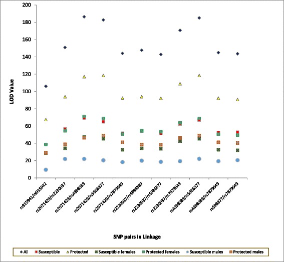 Methods: DNA was extracted from 1,051 individuals. Sixty-eight SNPs in the region of the G6PD gene were genotyped. A database created during the 1992-1993 malaria epidemic for the same individuals was used to assess the associations between the G6PD SNPs and parasite density or disease severity of uncomplicated malaria infections. Linkage disequilibrium for SNPs and haplotype structures were identified.